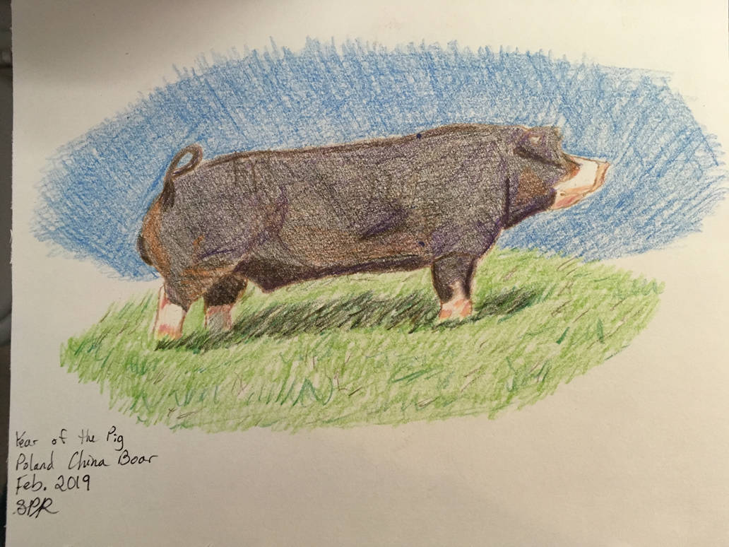 | (Above: My recent Year of the Pig piece-more on that another day-Poland China Boar in colored pencil) |