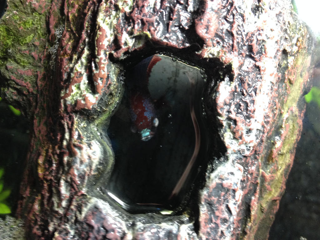 | (Nearly blind Betta, Dude, peeky-peeking.) |