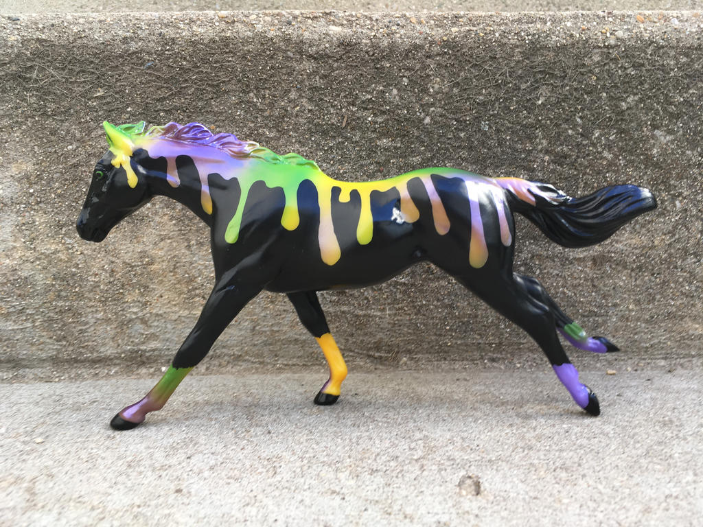 | (I conga this mold and this was the year-along with this year that Breyer decided to go crazy with the releases. At least this year there is an easy to obtain RR. This was the Halloween special Bogeyman-called Ecto I by me as it's a mare) |